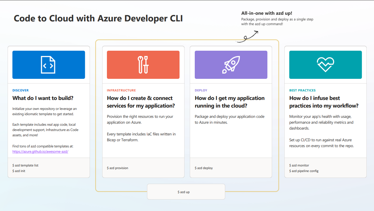 - Azure Developer CLI (azd) 1.0.0 release — Streamline your local machine-to-Azure development workflows when developing applications for the cloud.