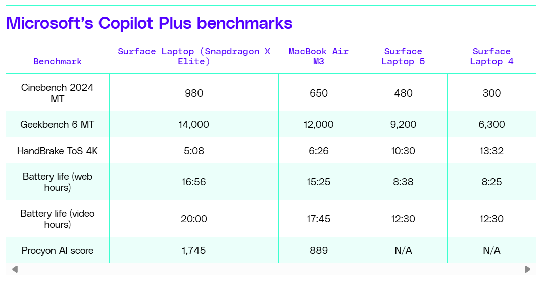 And it looks like Arm-based PCs are finally going to happen. It looks like they bring a legitimate leap in performance — just look at these benchmarks: